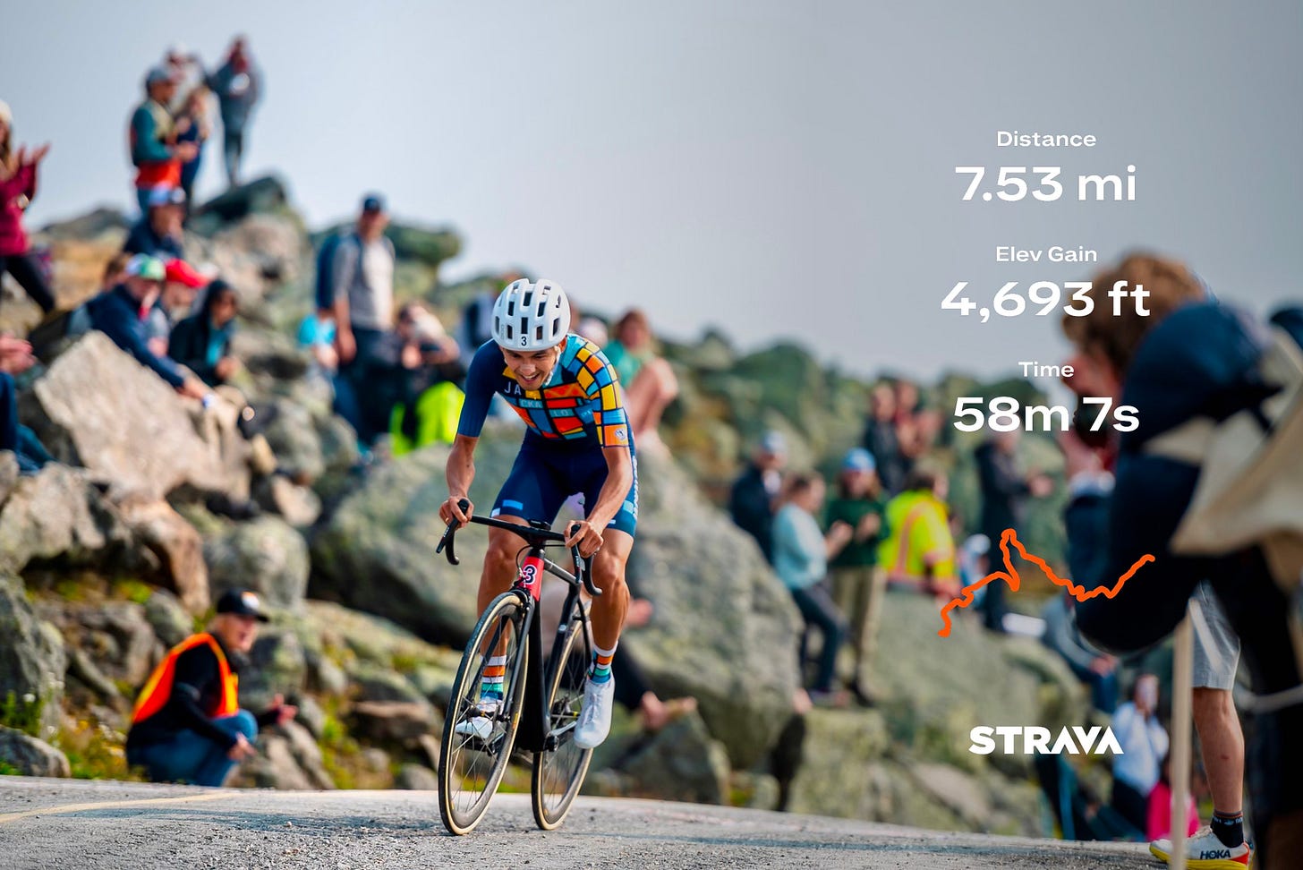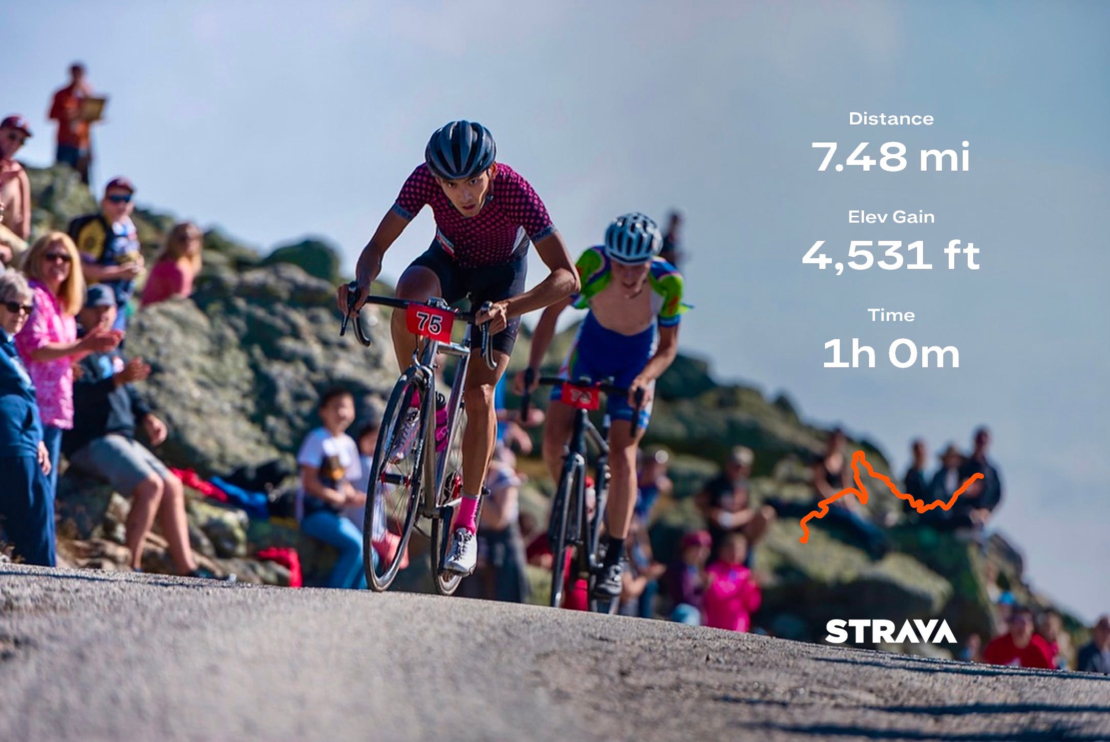 I open my eyes for the last time as I gently release my grip on the handlebars. I can see the crowd swelling near the top. I’m maybe three minutes away. I flip my Garmin screen to see my elapsed time.