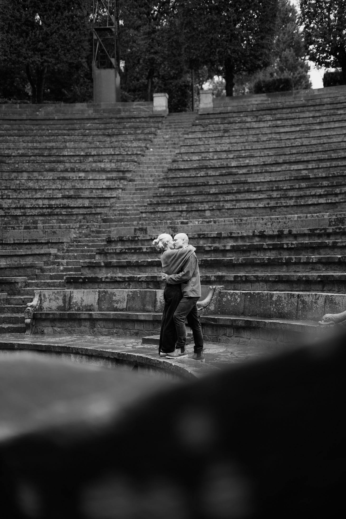 On Montjuïc mountain in Barcelona, we stood in the center of Teatre Grec, as Ben got down on one knee in front of Tess under the rain and the perfectly overcast light. We were there to photograph this moment; two friends committing to belong to each other with a ring and a question.